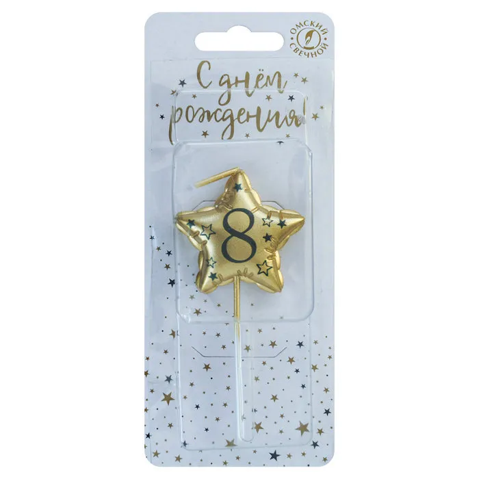 Свеча-звезда "8" Золото 9 см./0908