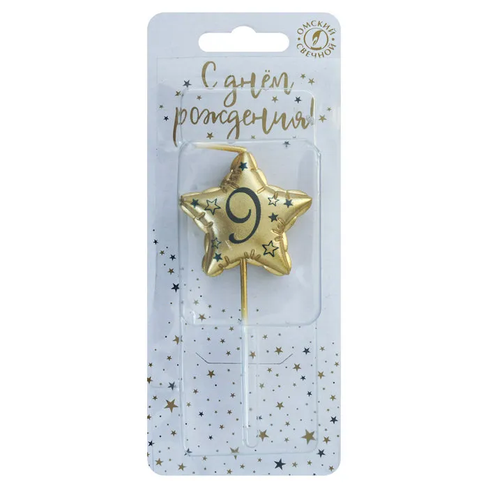 Свеча-звезда "9" Золото 9 см./0909