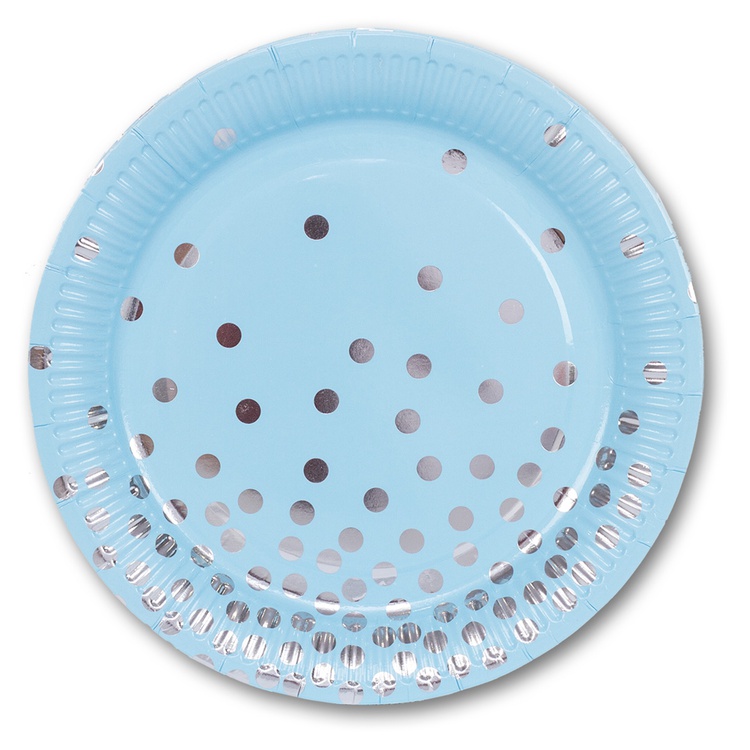 - Тарелка бум. "Горошек серебро" 23см 6шт 1502-2876