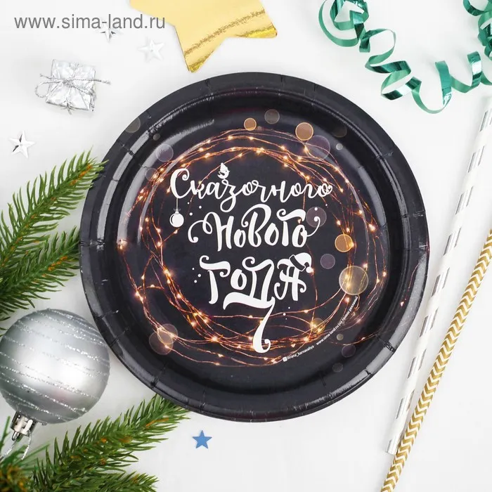 Бумажная тарелка размером 17см. Используется совместно с другими элементами коллекции по дизайну (стаканы, приборы, скатерти и т.п.) как украшение стола или по своему непосредственному назначению.