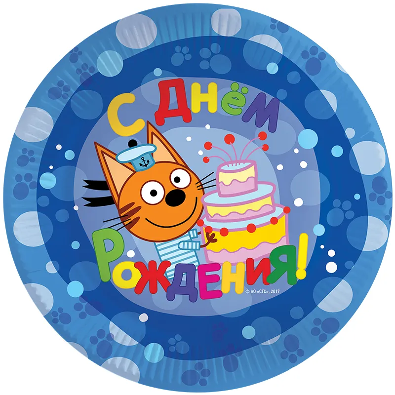 Бумажные тарелки для пикника или торжества в офисе. В наборе 6 тарелок размером в 7 дюймов. Рекомендуем использовать с другими товарами коллекции «Три кота» (салфетки, стаканчики, колпачки, скатерть, языки-гудки, хлопушки, мыльные пузыри, свечи), для оформления вашего торжества в едином стиле!