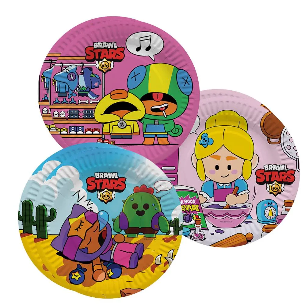 Красочная одноразовая посуда с любимыми персонажами игры «Brawl Stars» станет дополнительным украшением праздника, а также поможет минимизировать время организации торжества.