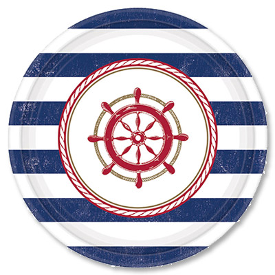 Штурвалы в обрамлении канатов и бело-синих полос - для тех, кто любит море.