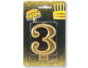 Свеча-цифра "3" Золотая 8см / 1502-2836