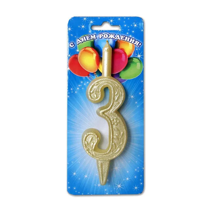 - Свеча-цифра Золото 7,6 см. "3"