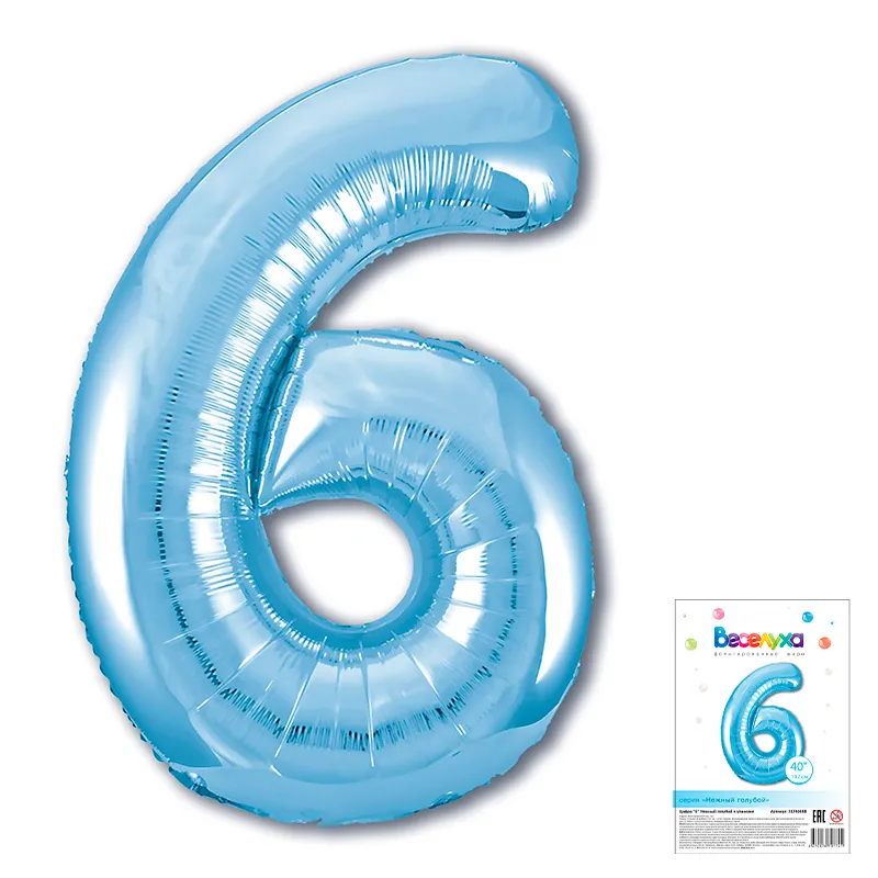40" Цифра "6" Нежно-голубой/ Китай-Веселуха 317406ВВ