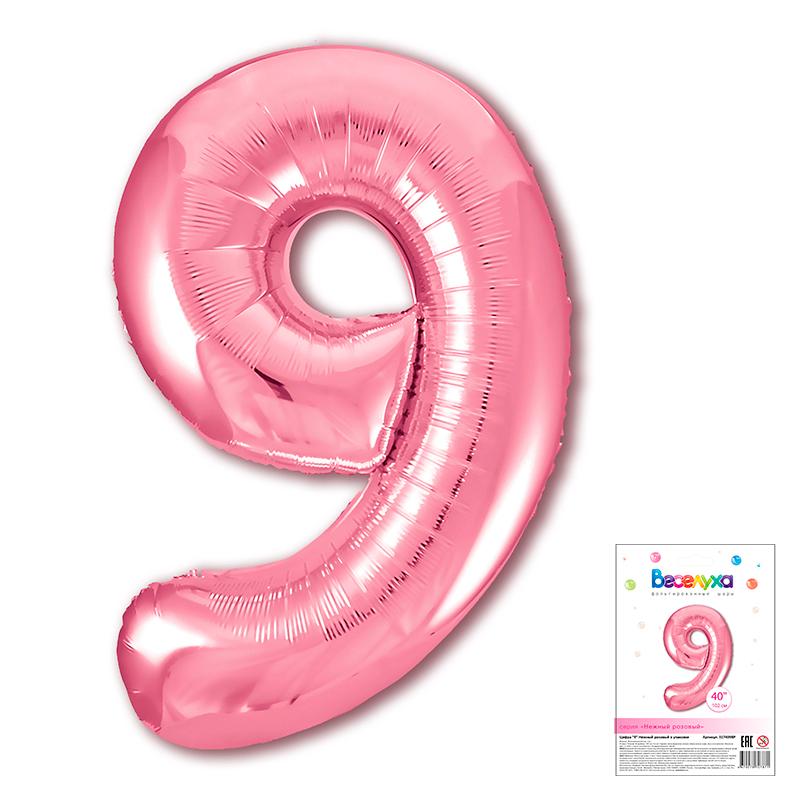 40" Цифра "9" Нежно-розовый/ Китай-Веселуха 317409ВP