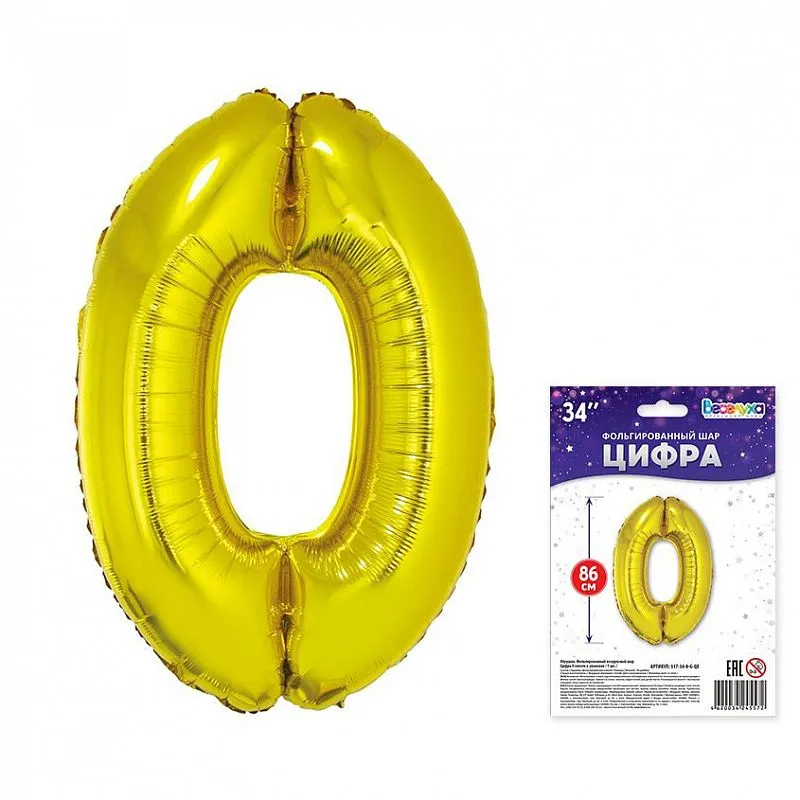 Цифра "0" - золото в упак 34" / Китай