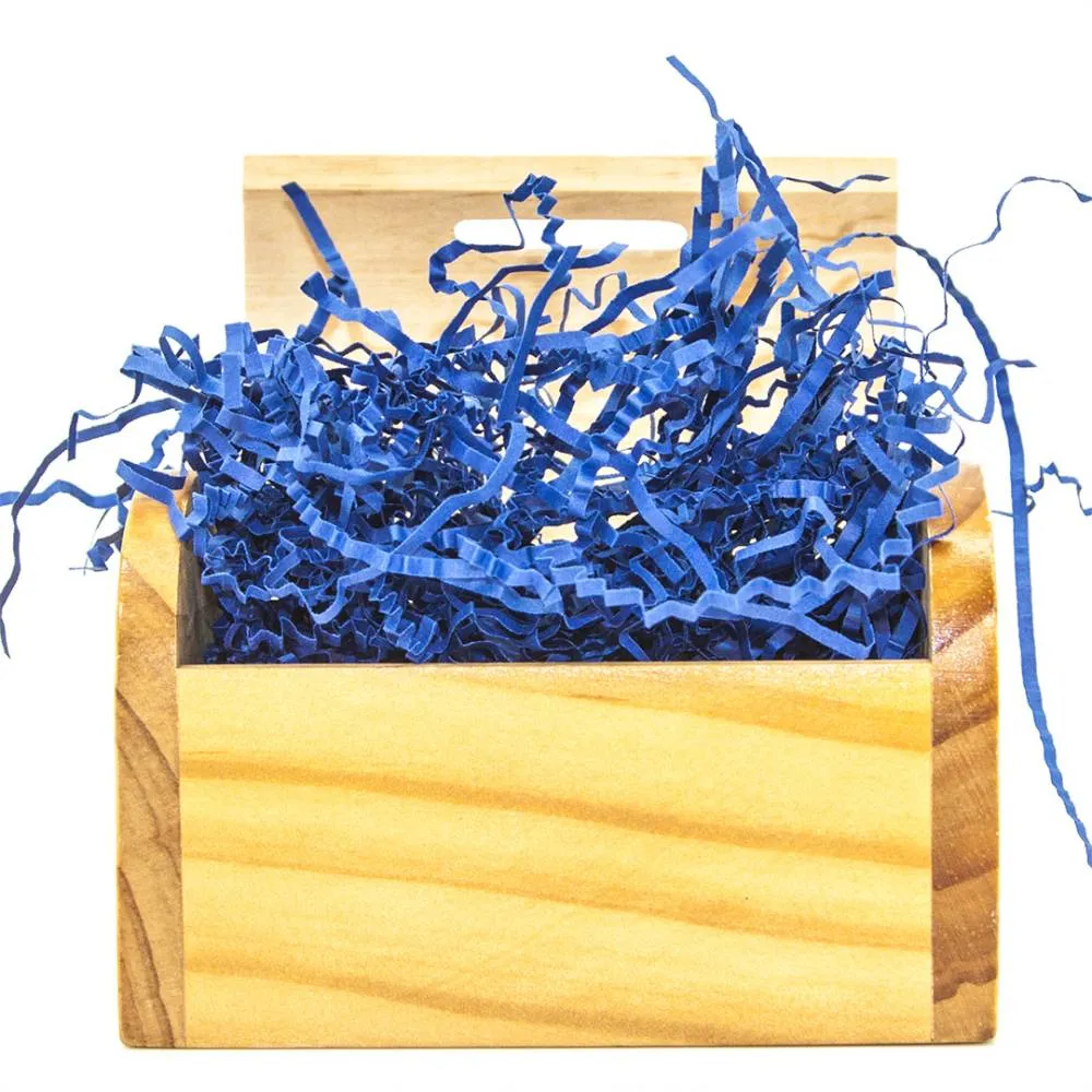 Наполнитель для коробок Бумажный Синий представляет собой тонко нарезанные полоски бумаги тишью.