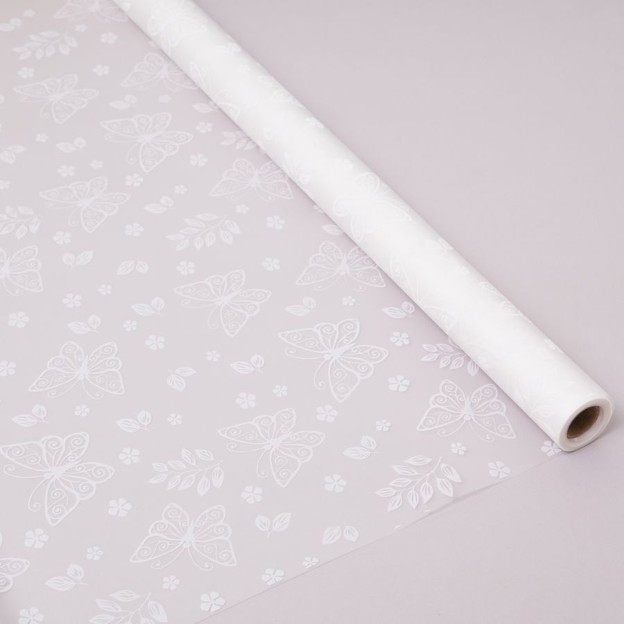 - Пленка матовая "Бабочки" 57 см*10 м. белая / ч38128