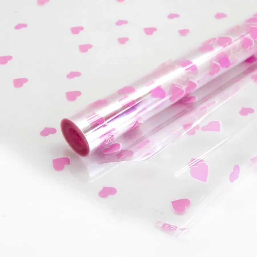 Пленка упаков. Сердечки Розовый 70 см*8 м / 73104