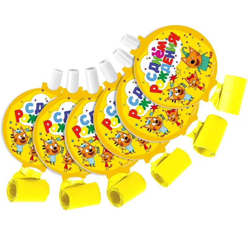 Игрушка-свистулька, разворачивается, издавая характерный звук. Рекомендуем использовать с другими товарами коллекции «Три Кота» (салфетки, стаканчики, тарелки, скатерти, свечи, воздушные шары, хлопушки, мыльные пузыри), для оформления вашего торжества в едином стиле!