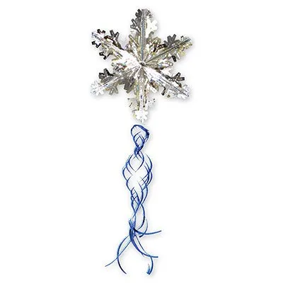 Новогодняя подвеска с резной снежинкой 3d, за которой как шлейф тянется синий хвост. Подвесьте такие новогодние кометы по дому, созд айте вихрь снежного настроения! Длина подвески 60 см.