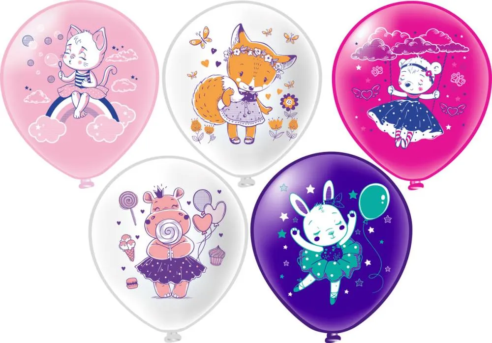 12" Шарики для девочки! 5 дизайнов / 100 шт (Тайланд) / ч44342