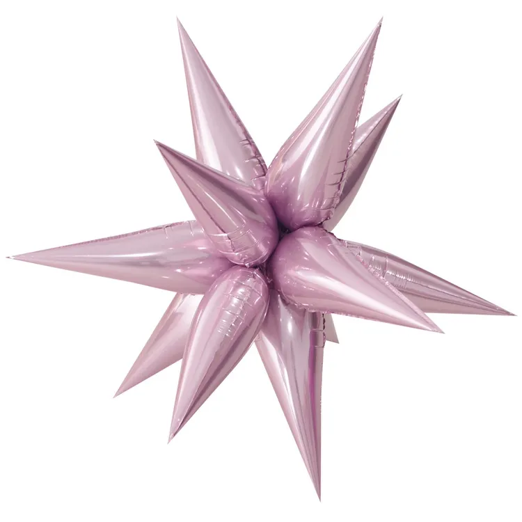 Комплект содержит 13 элементов (конусов) - 12 используются для составления звезды, 13й запасной. Размер одного элемента: 35см (Д) х 14см (Ш). Каждый элемент имеет встроеный клапан и надувается воздухом. Надутые элементы необходимо попарно связать между собой за хвосты и затем соединить пары друг с другом таким образом, чтобы получилась звезда. Более подробная иструкция сборки изображена на задней стороне хедера.