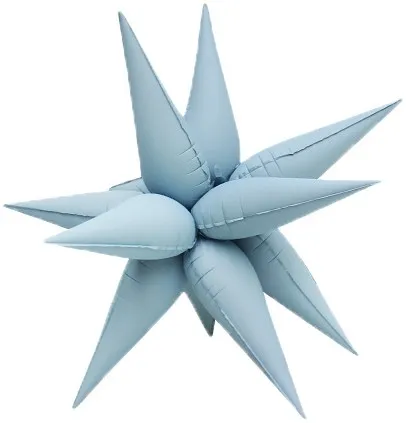 Комплект содержит 13 элементов (конусов) - 12 используются для составления звезды, 13й запасной. Размер одного элемента: 35см (Д) х 14см (Ш). Каждый элемент имеет встроеный клапан и надувается воздухом. Надутые элементы необходимо попарно связать между собой за хвосты и затем соединить пары друг с другом таким образом, чтобы получилась звезда. Более подробная иструкция сборки изображена на задней стороне хедера.