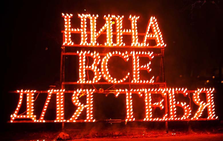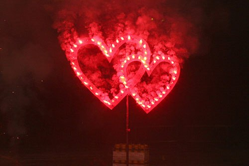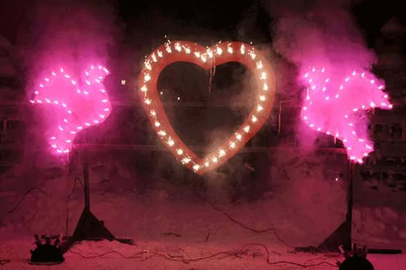 Стоимость символа из огня в виде сердца – 3000 рублей, остальные конструкции – по 2500 рублей за каждый элемент.