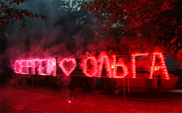- помощь специалиста с установкой и запуском фейерверка в виде букв;
